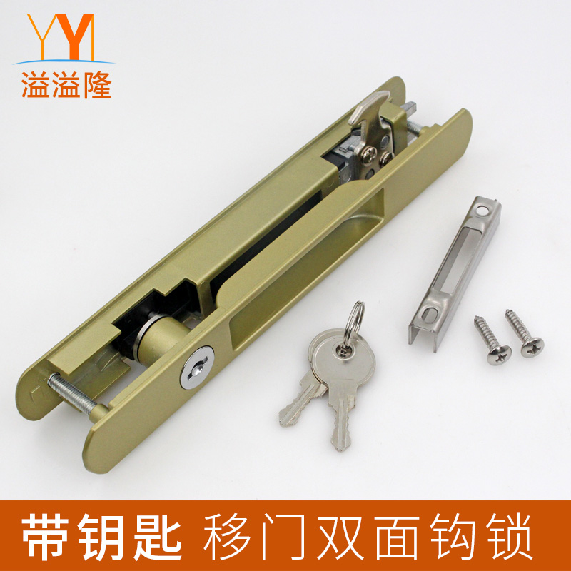 阳台门窗锁 平移玻璃门趟门钩锁老式 溢溢隆 锌合金锁芯双面条形锁