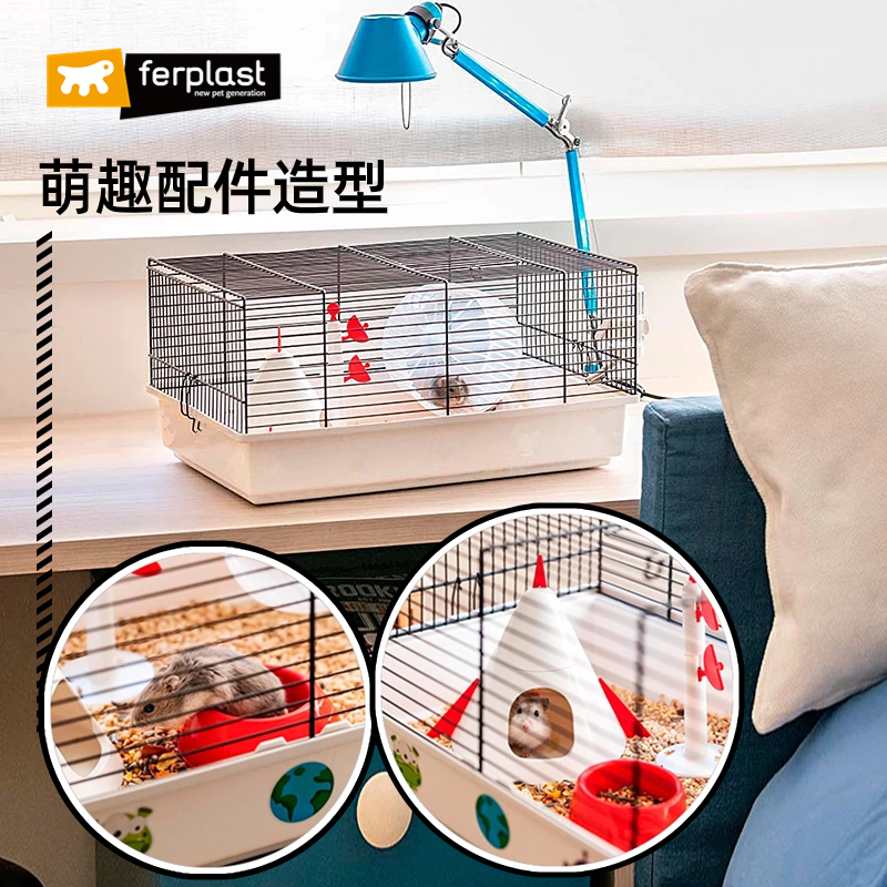 飞宝Ferplast进口仓鼠笼透气铁丝笼46侏儒鼠笼子套装 金丝熊饲养笼