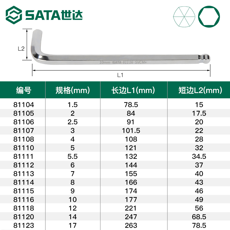12mm 2.5 世达内六角扳手单个球头加长特长1.5