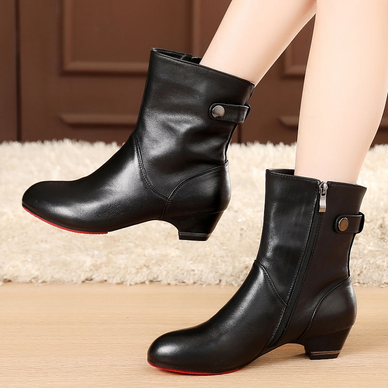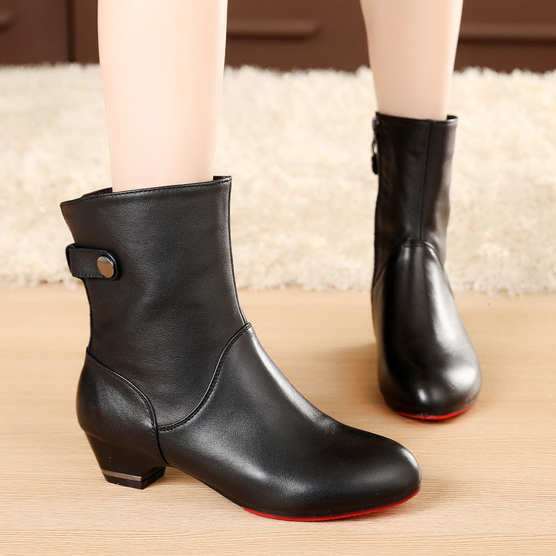 中跟41加绒棉靴 粗跟短靴女春秋单靴真皮靴子短筒靴大码 秋冬季 女鞋