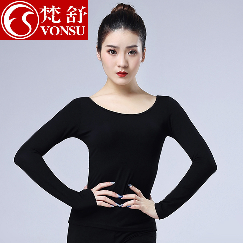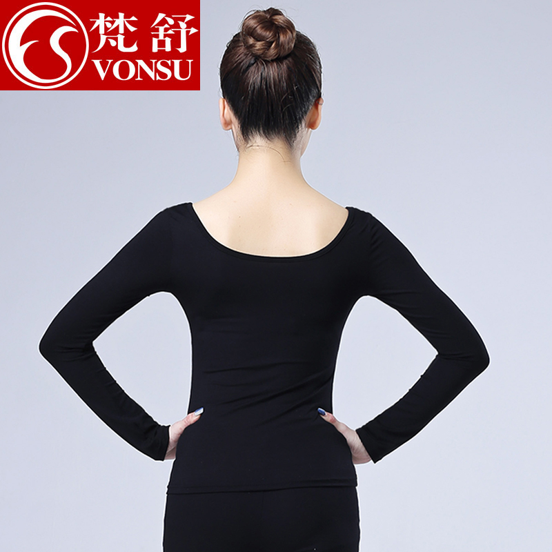 圆领春夏上衣 女成人舞蹈服黑色形体练功服长袖 梵舒拉丁舞服装 套装