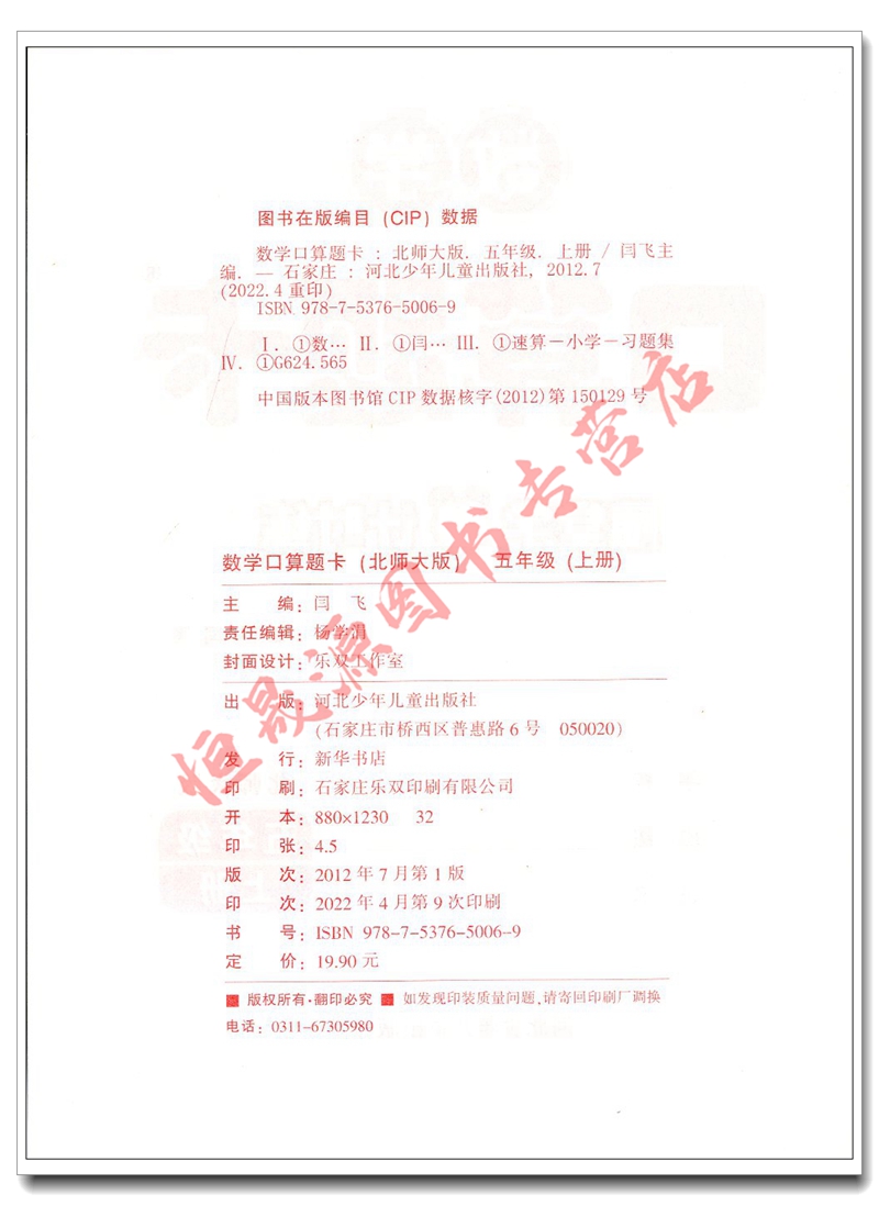 脱式 社课本使用海淀新版 配北京师范大学出版 速算应用题卡 数学口算心算速算巧算竖式 BS北师大版 五年级上册 口算题卡 乐双图书