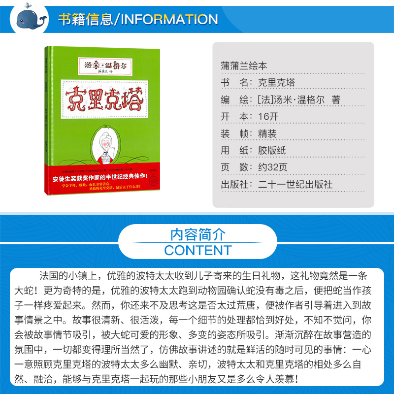 12岁小学生幼少儿童宝宝情商教育早教启蒙图画绘本书籍 克里克塔 睡前故事亲子认知早教共读故事书 精装 蒲蒲兰绘本馆