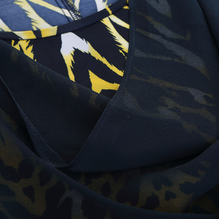 印花修身 声雨竹专柜女装 知性优雅假两件短袖 新品 连衣裙 夏季