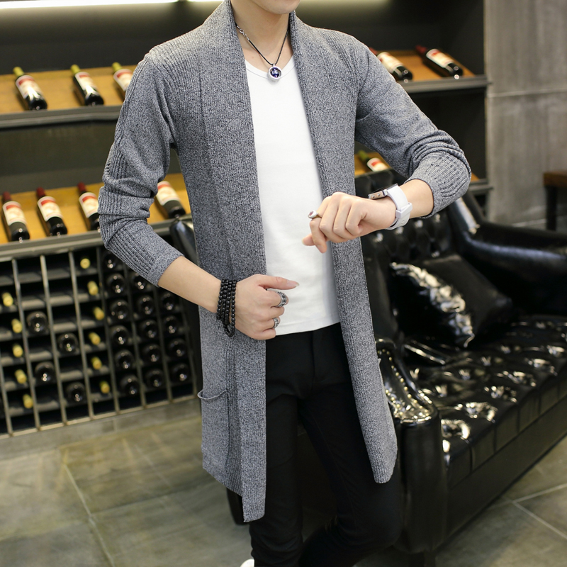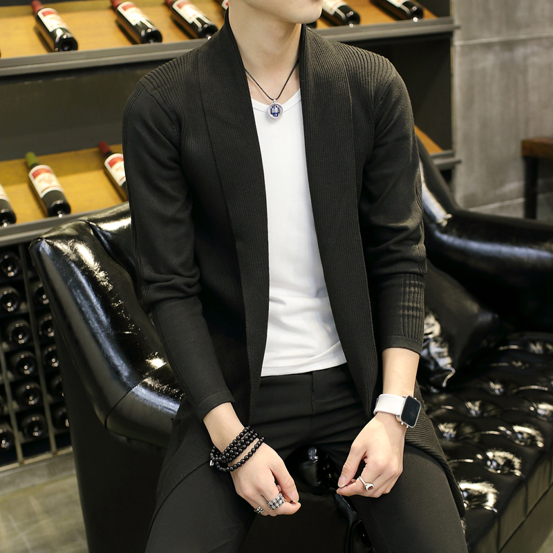 韩版 长款 呢子加厚风衣外套 2025春秋季 V37黑色高级感毛呢大衣男款