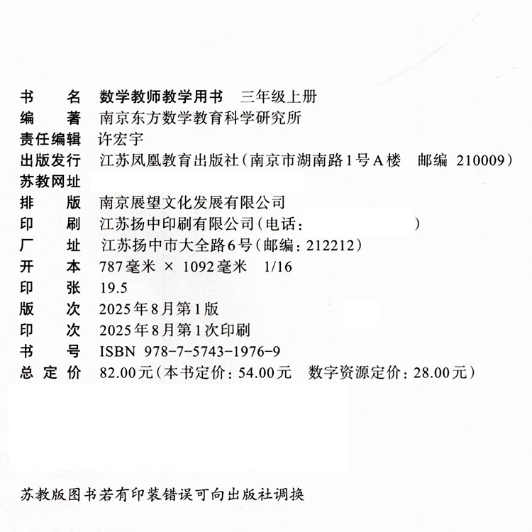 3上 苏教版 教师用书 含资源码 社 2025秋新版 江苏凤凰教育出版 小学数学教师教学用书数学三年级上册