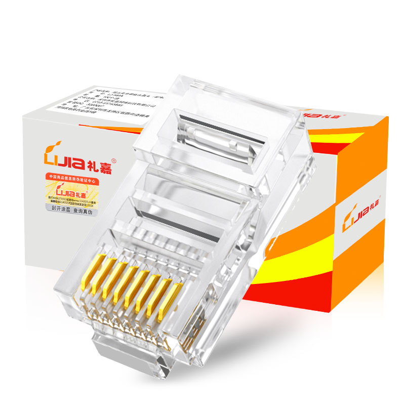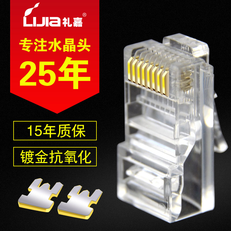 礼嘉网线水晶头超五类非屏蔽RJ45网络线连接头镀金8芯电话水晶头