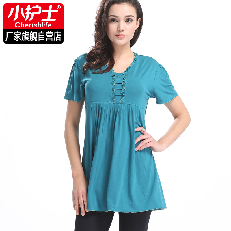 女夏休闲波浪领睡衣宽松中老年家居服上衣 小护士短袖 清仓处理
