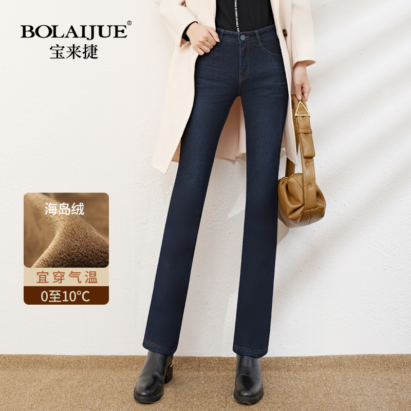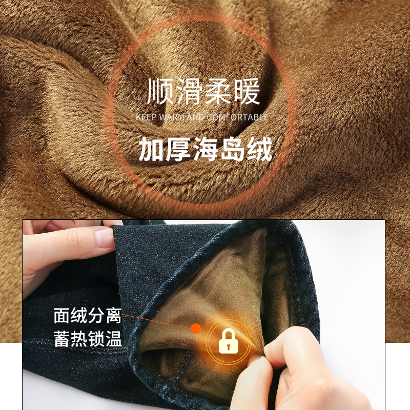 高腰加绒直筒裤 女裤 大码 弹力宽松显瘦黑色加厚牛仔裤 冬季 长裤 新款