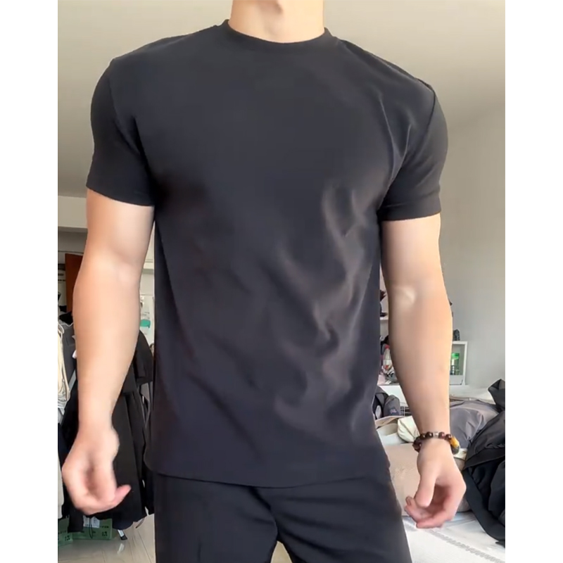 内搭打底衫 短袖 体育生穿搭健身显肌肉修身 白色小领口正肩t恤男款