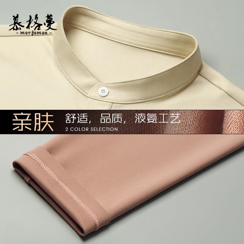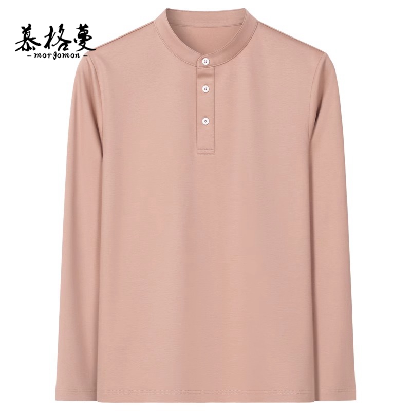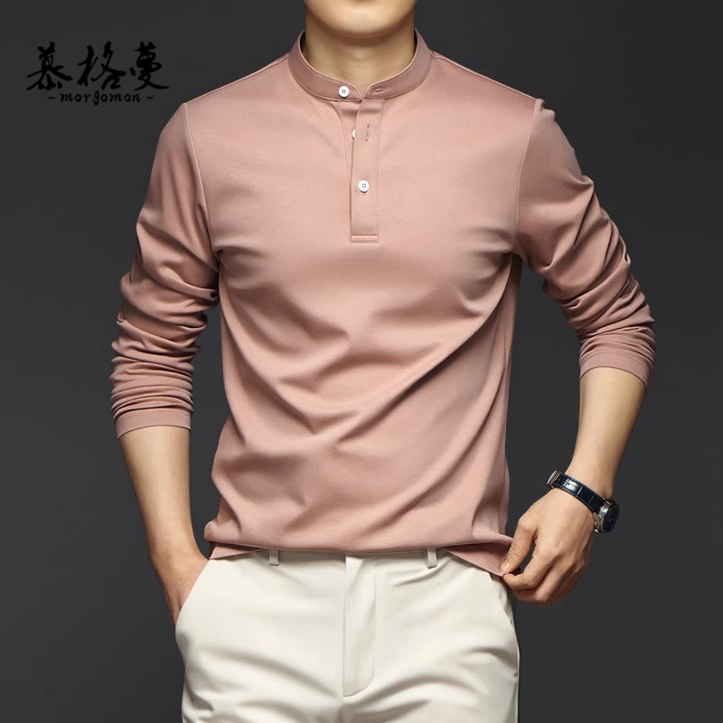 新款 男士 男装 T恤春秋冬纯色丝光棉冰丝打底衫 上衣体恤男 立领长袖