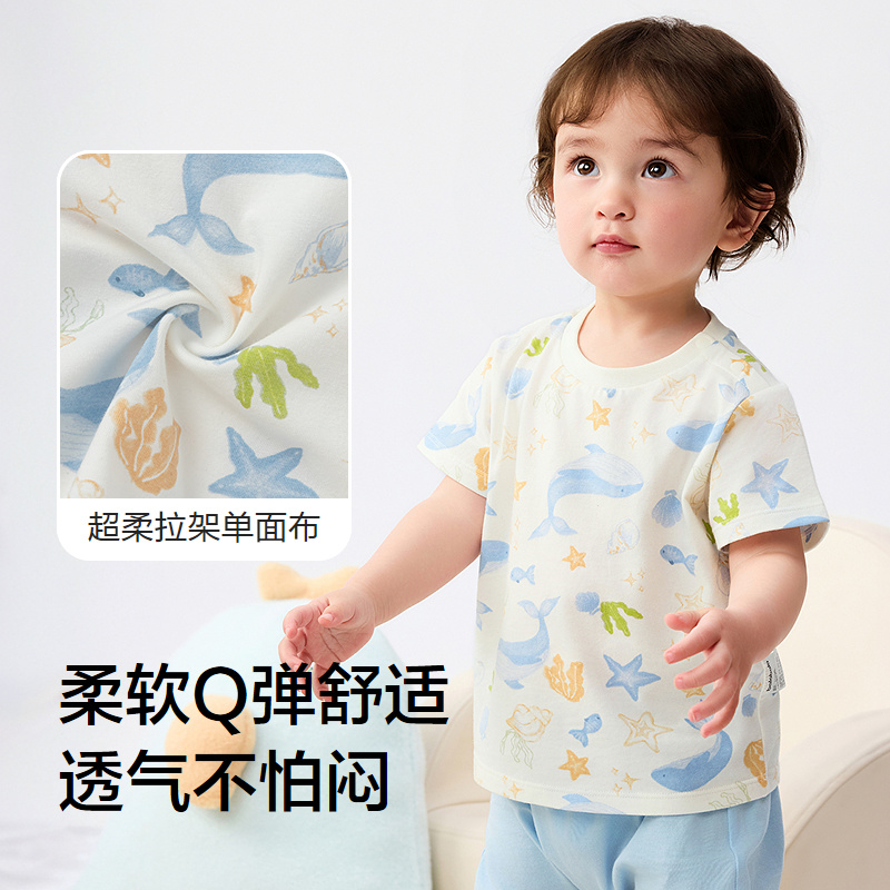 薄款 T恤男童女童白色上衣夏装 巴拉巴拉宝宝短袖 儿童 商场同款