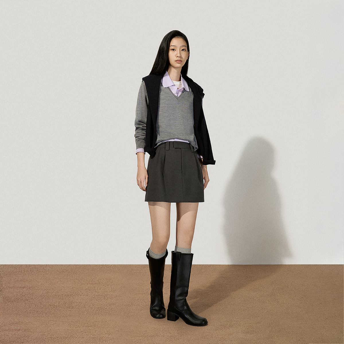 OCHIRLY欧时力 压褶A字半身裙短裙通勤显瘦小个子2025秋冬新品