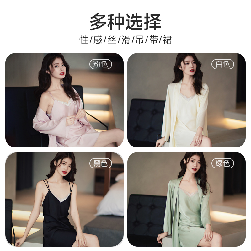 2025新款 性感冰丝睡袍纯欲风高级感蕾丝吊带睡衣 睡裙女春秋夏薄款