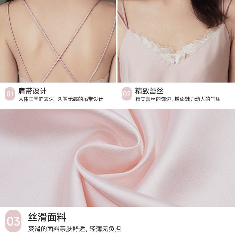 性感睡衣女2025年春夏季 纯欲风冰丝绸带胸垫蕾丝吊带睡裙睡袍 新款