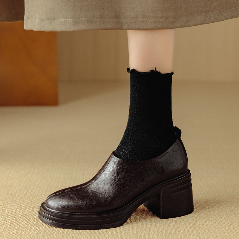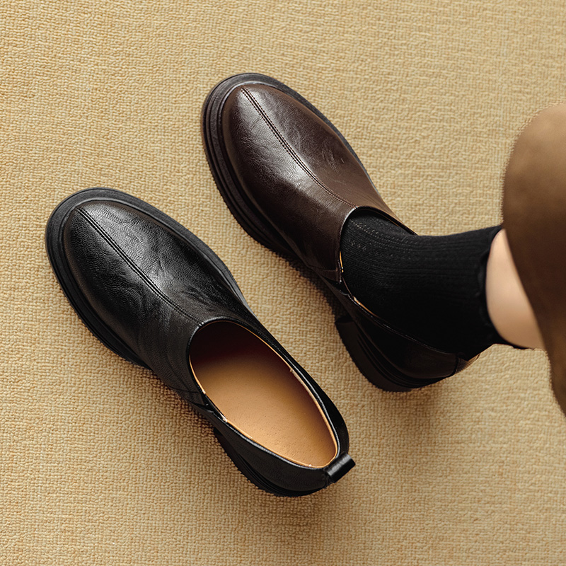 女 真皮羊皮防水台一脚蹬乐福粗跟小皮鞋 厚底高跟深口单鞋 女春秋款