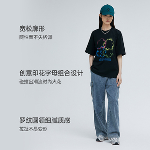 设计感渐变印花情侣上衣 T恤女夏季 商场同款 北欧时刻黑色圆领短袖