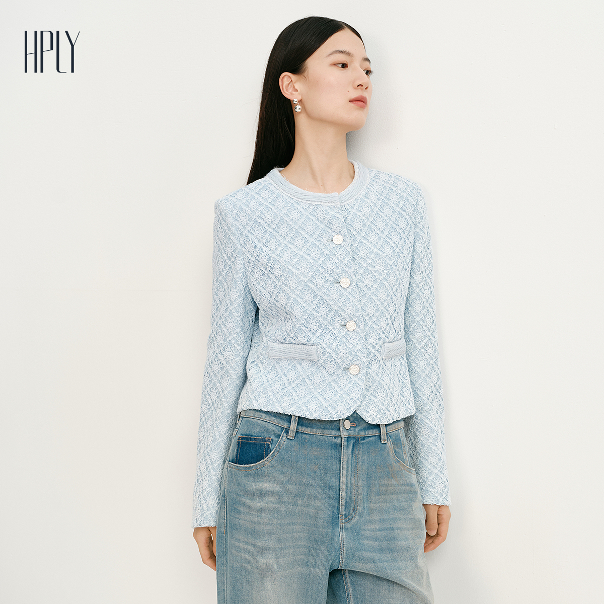 女蕾丝金属扣风格 新款 HPLY荷比俪2025春季 小香外套 商场同款