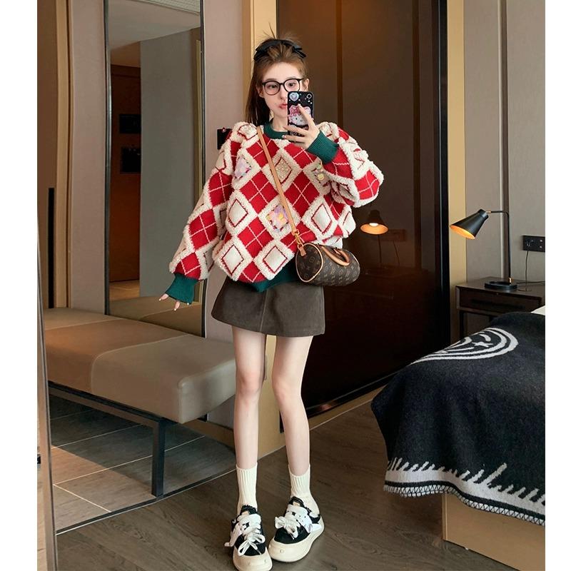 绞花肌理圆领毛衫 森柔 短款 女冬季 百搭叠穿打底上衣 森马针织开衫