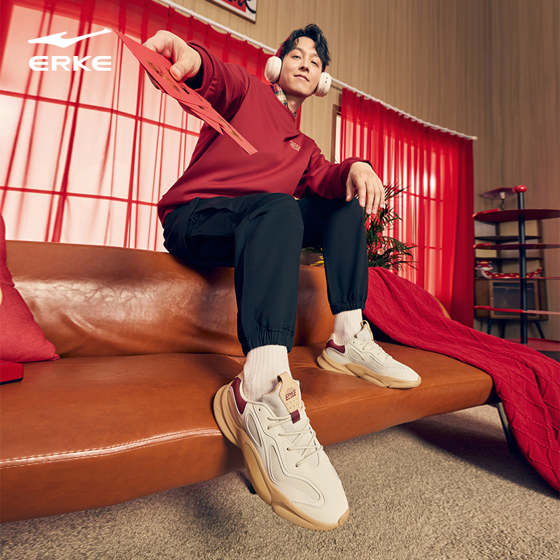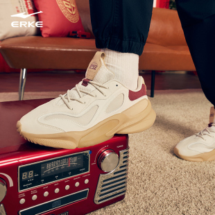 老爹鞋 鸿星尔克新年鞋 皮面厚底本命年红色休闲鞋 男女秋季 子运动鞋