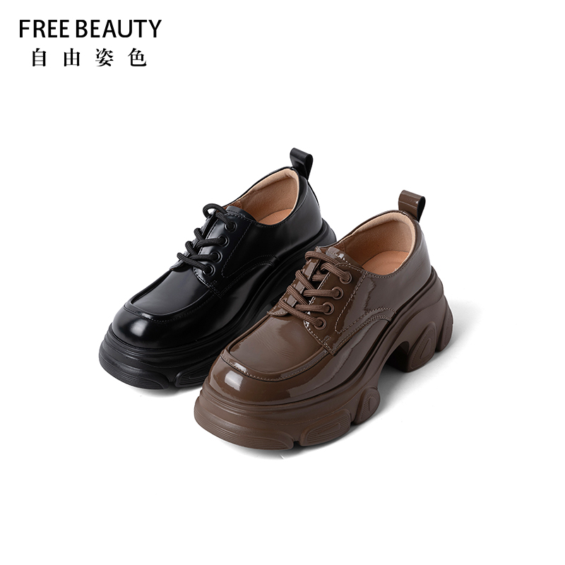 深口乐福鞋 商场同款 自由姿色厚底增高系带漆皮牛津鞋 新品 25年春季