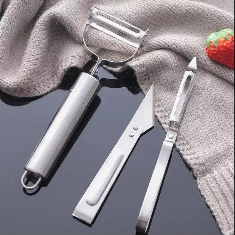 多功能不锈钢削皮刀三件套 刮皮削皮器厨房瓜果刨皮刨丝拔鸡毛刀