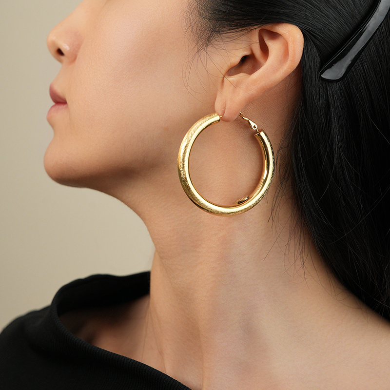 银色大圈耳夹女无耳洞耳圈新款 蚊香盘圈圈大圆圈素圈耳环圆环耳饰