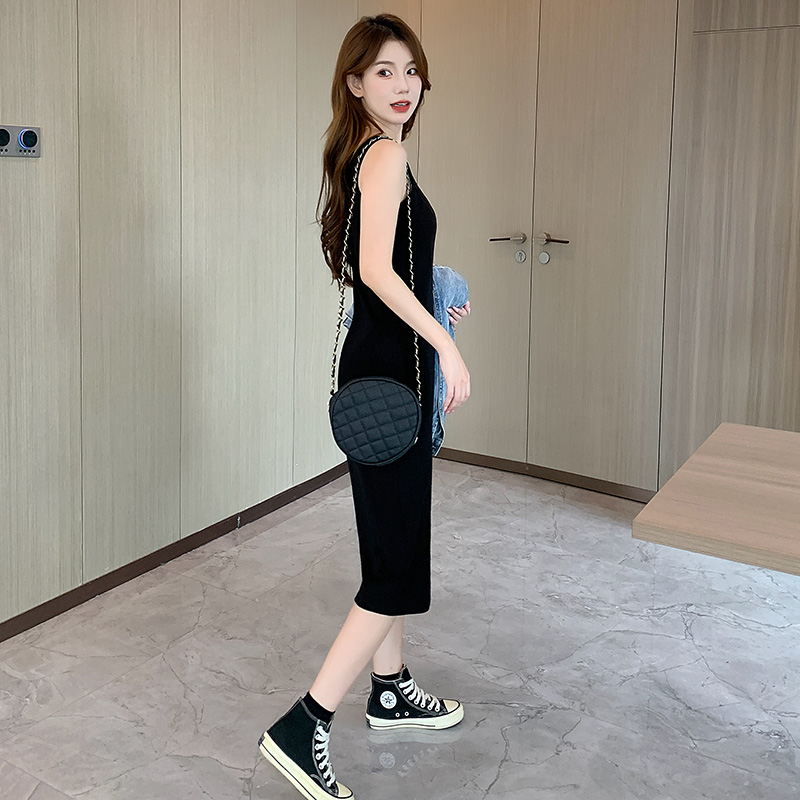 曲线主义吊带紧身包臀连衣裙子后妈气质2025夏流行新款 黑灰色 爆款