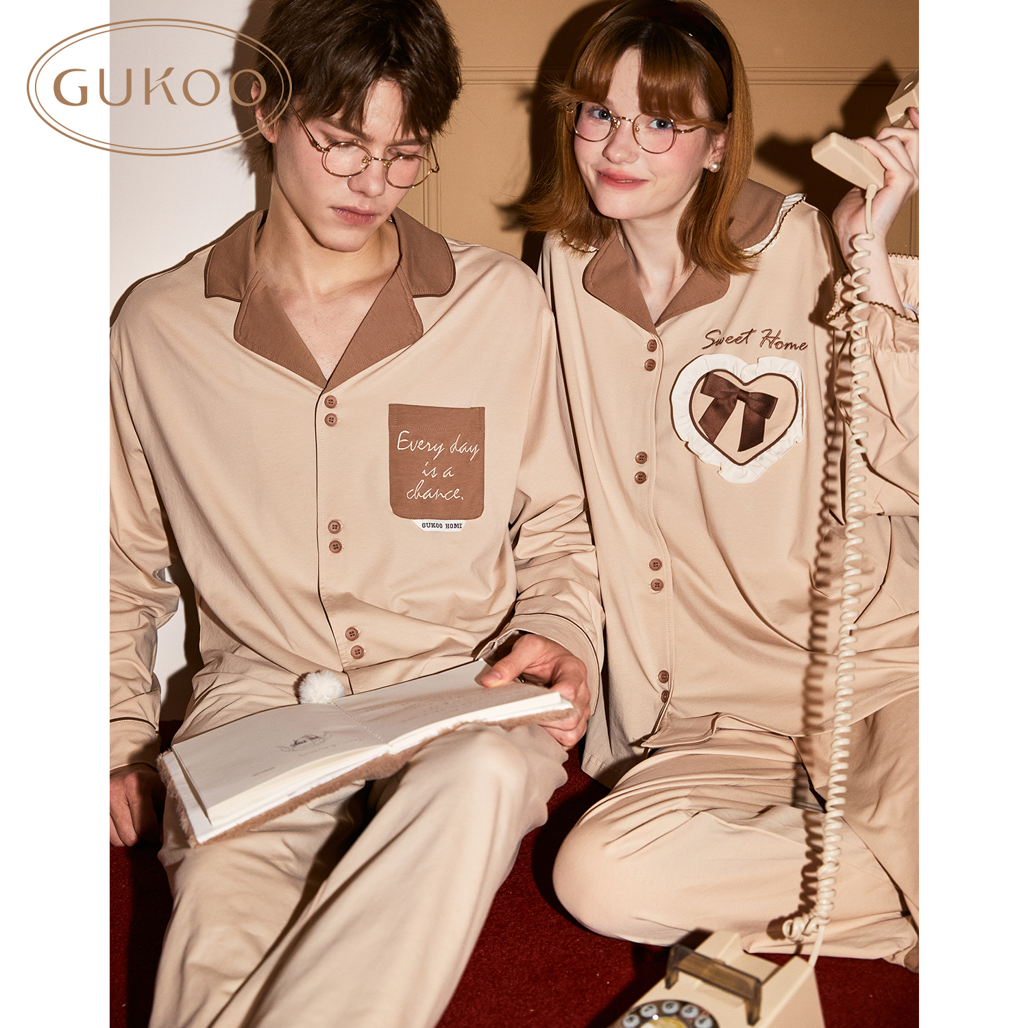 宽松男家居服套装 核桃卡简约新款 果壳睡衣情侣春秋款 商场同款