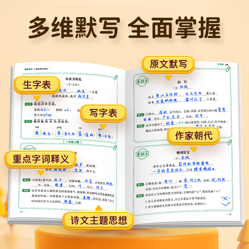 课本阅读默写本练习本 小学必背古诗文睡前默写古诗打卡计划古诗词古诗文大全一二三四五六年级同步新版 易蓓