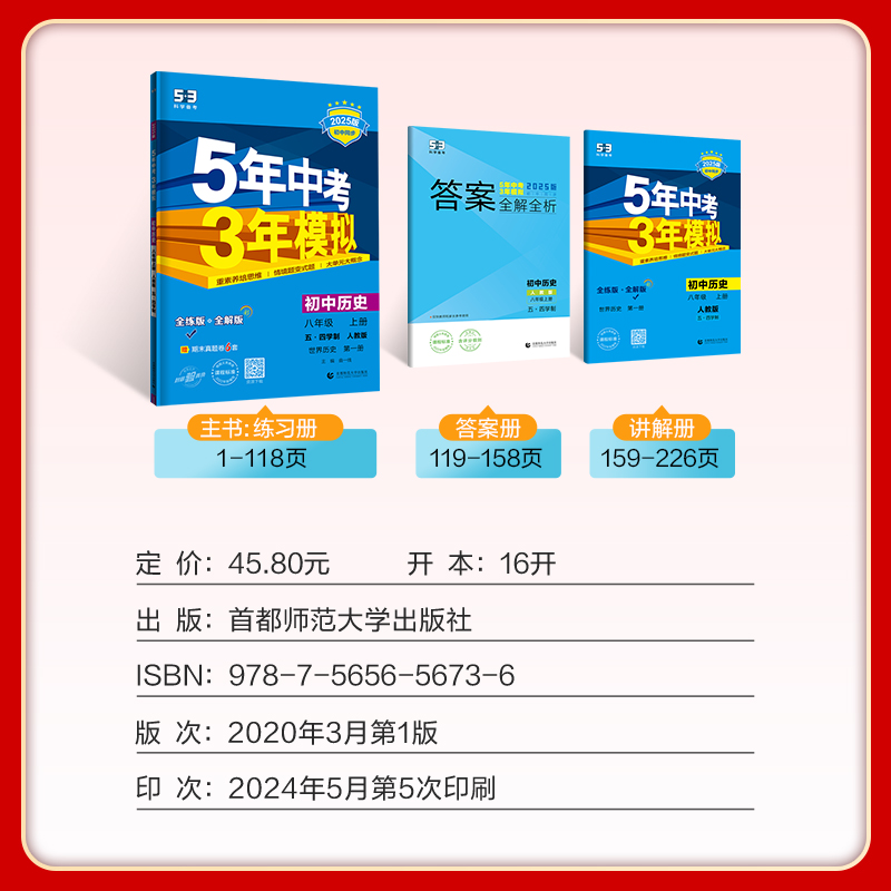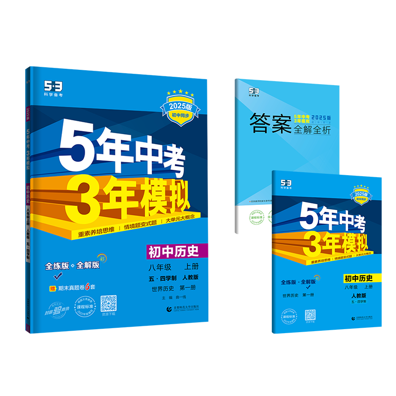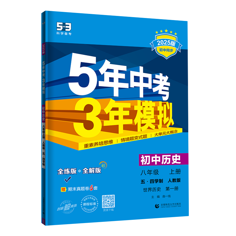 2025版 同步跟课练习册初三五年中考三年模拟历史同步练习册8年级53中考习题 八年级上册5年中考3年模拟历史五四制人教版