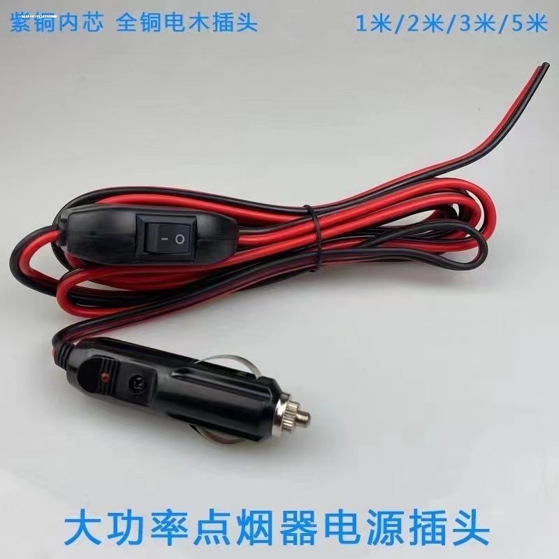 点烟器插头带线取电汽车载气泵电源延长大功率开关12v24V电木纯铜