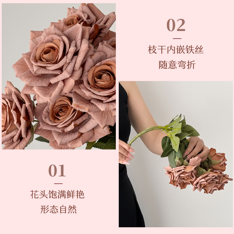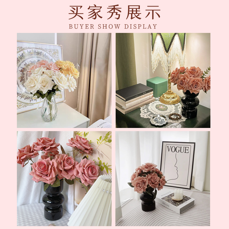 玫瑰仿真花假花摆设干花花束客厅餐桌花瓶插花装 饰花艺桌面摆件