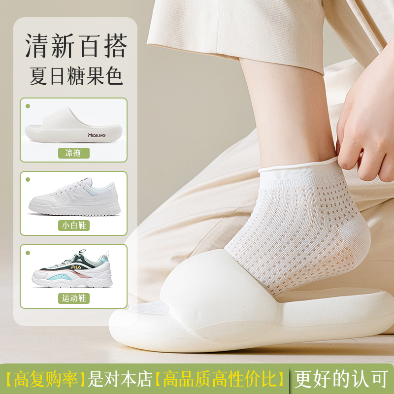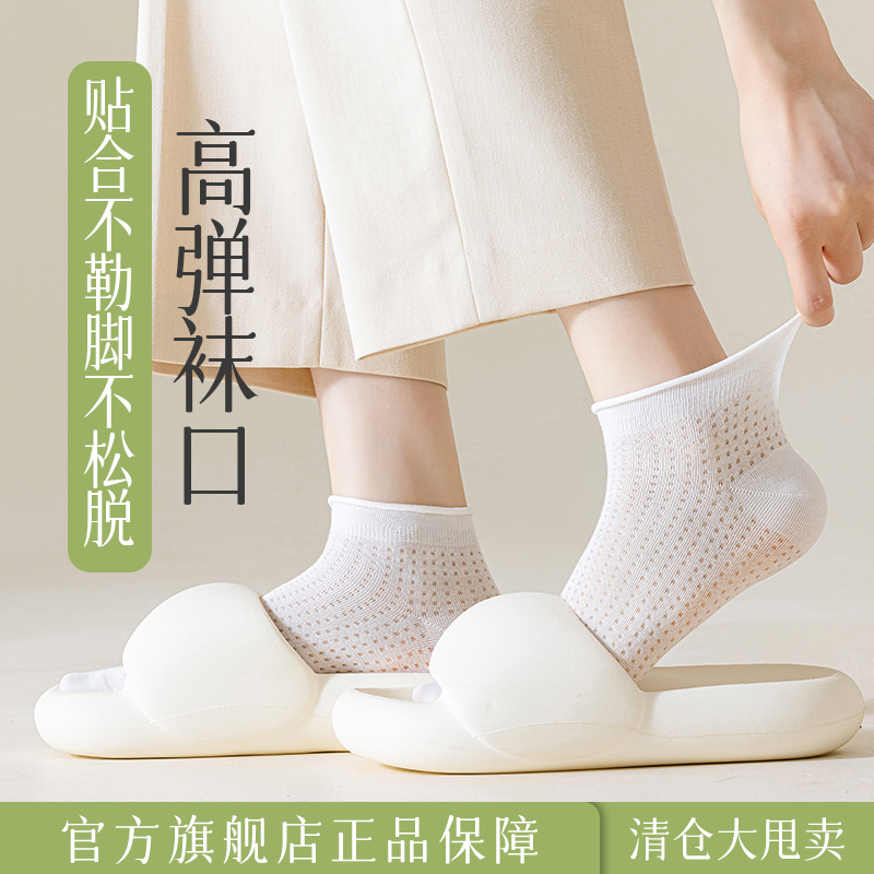 薄款 有棵树袜子女士短袜夏季 纯棉防臭透气防滑白色短 10A抗菌