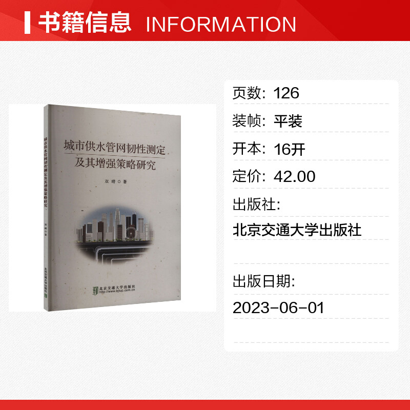 大学教材大中专 著 新华书店正版 图书籍 社 城市供水管网韧性测定及其增强策略研究 北京交通大学出版 双晴