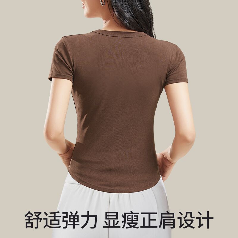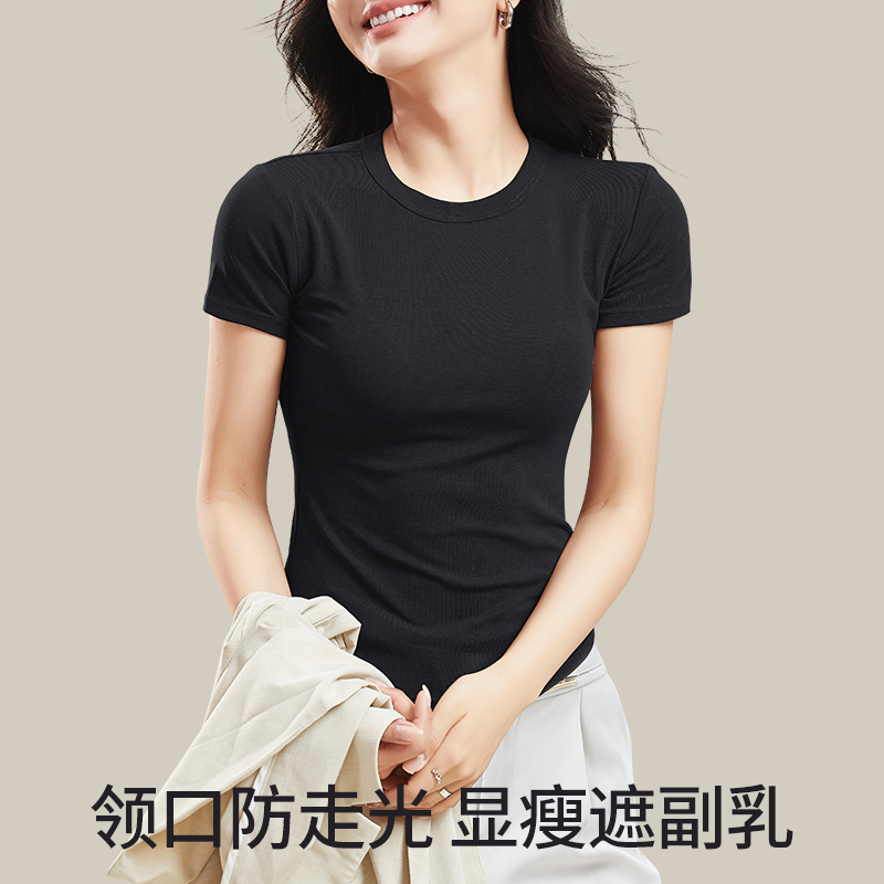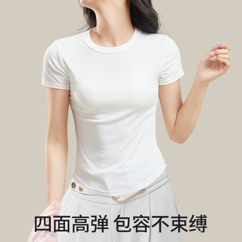t恤女夏季 纯白色棉体恤打底衫 2025新款 修身 上衣短款 回力正肩短袖
