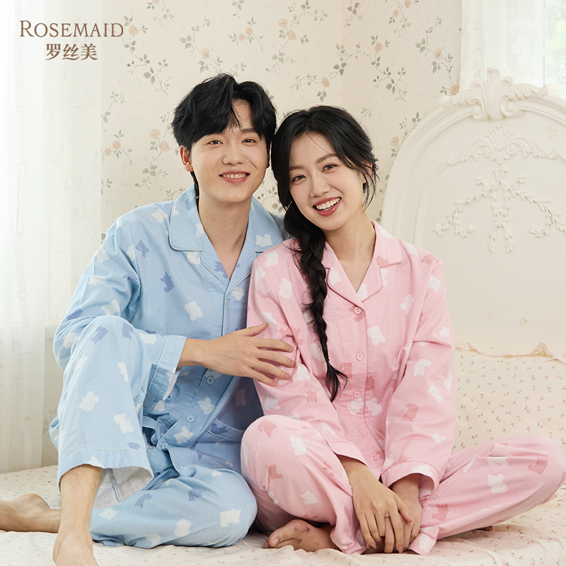 纯棉磨毛印花14268 新款 64247情侣家居服睡衣 罗丝美秋季 Rosemaid