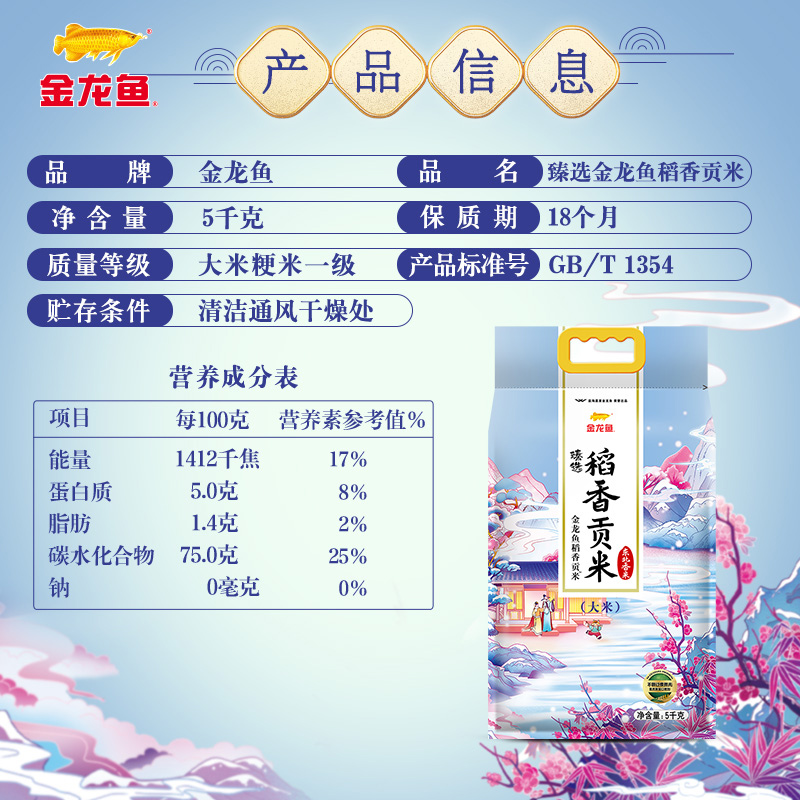 东北大米 2袋整箱装 超级桶 金龙鱼臻选稻香贡米5kg