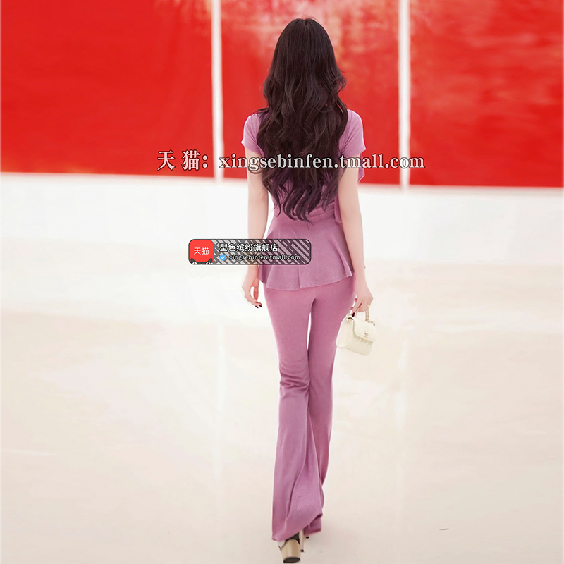 抽皱荡领上衣高腰喇叭裤 夏季 新款 套装 两件套 欧货漂亮时尚