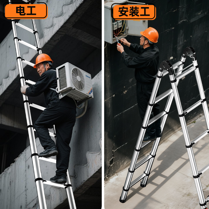 巴芬伸缩梯子不锈钢加厚工程铝合金折叠人字梯家用多功能便携楼梯