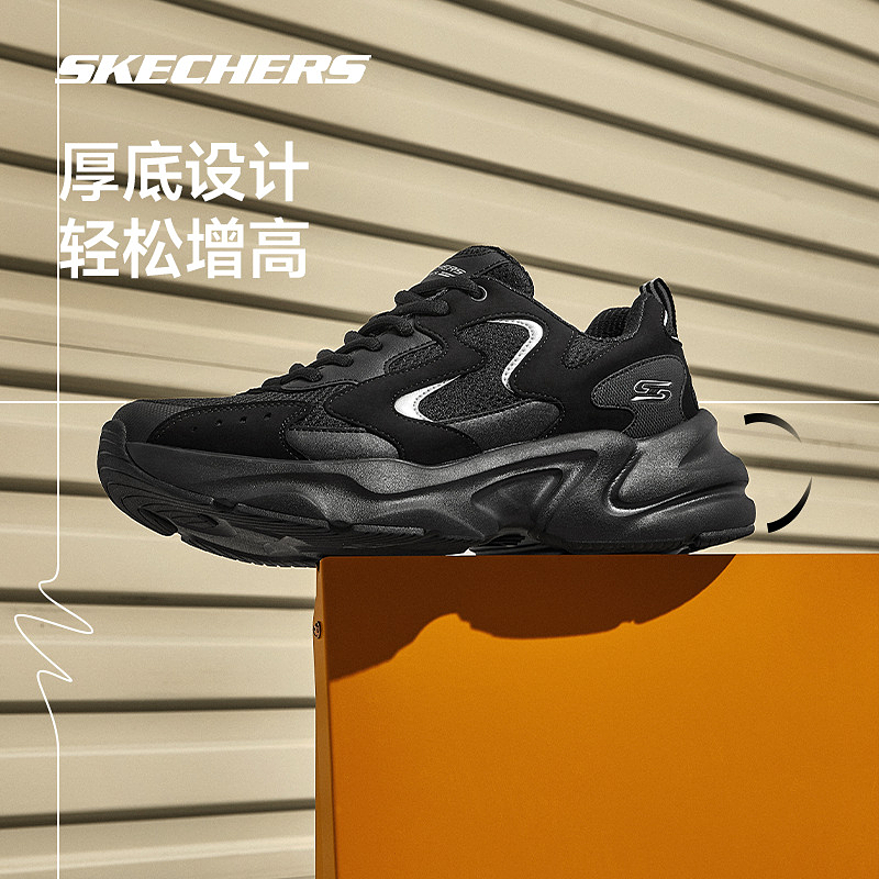 斯凯奇官方outlets踏浪2025秋冬老爹鞋 厚底显高 男女休闲运动鞋