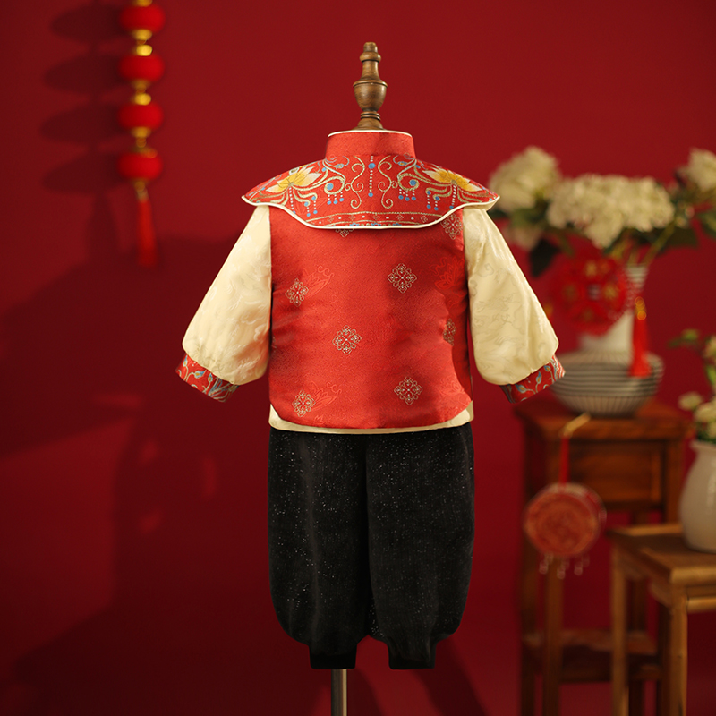 周岁礼服男宝宝红色马面裙女童抓周唐装 龙凤胎男童过年衣服 新中式