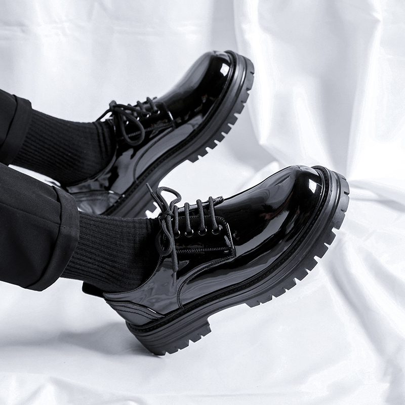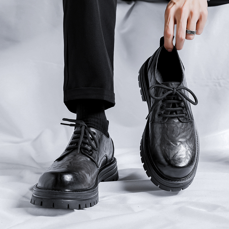 秋季 厚底增高真皮黑色大头德比潮鞋 商务正装 休闲皮鞋 亮面男士 男鞋