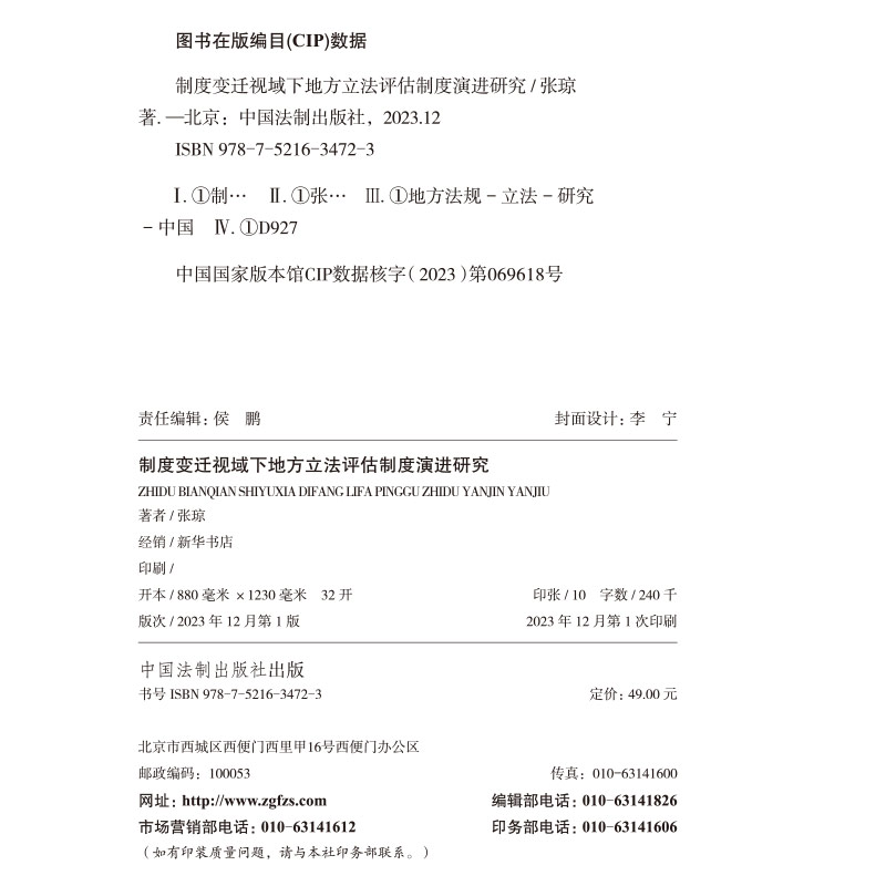 张琼 公法与治理 学术文库 正版 社 制度变迁视域下地方立法评估制度演进研究 中国法制出版 9787521634723 2023新书