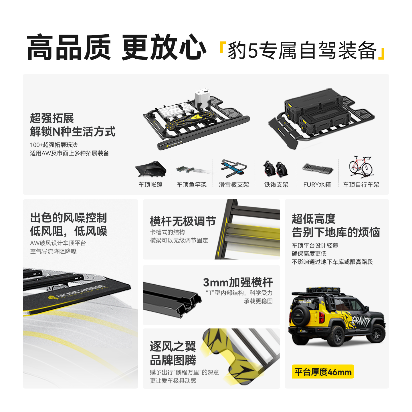 AW官旗自驾装 配件AW车顶行李架车顶平台 备方程豹5专用外观改装
