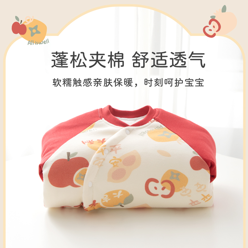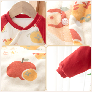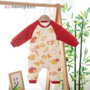 婴蓓依宝宝连体衣棉服婴儿满月百天衣服拜年服夹棉秋冬中国风红色