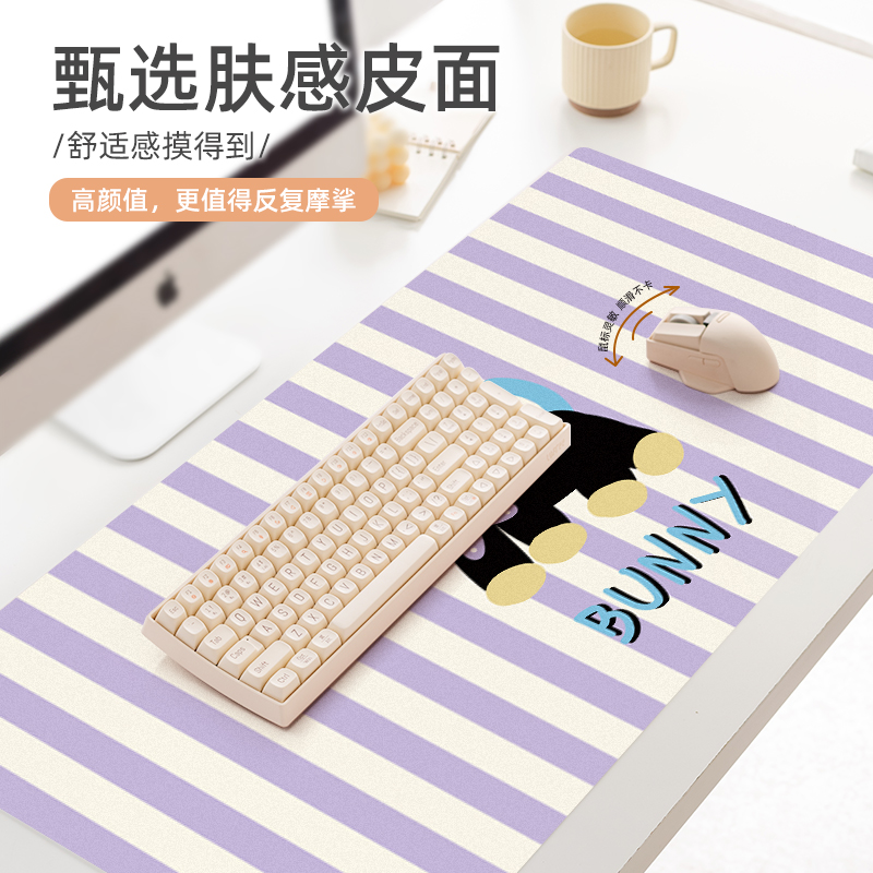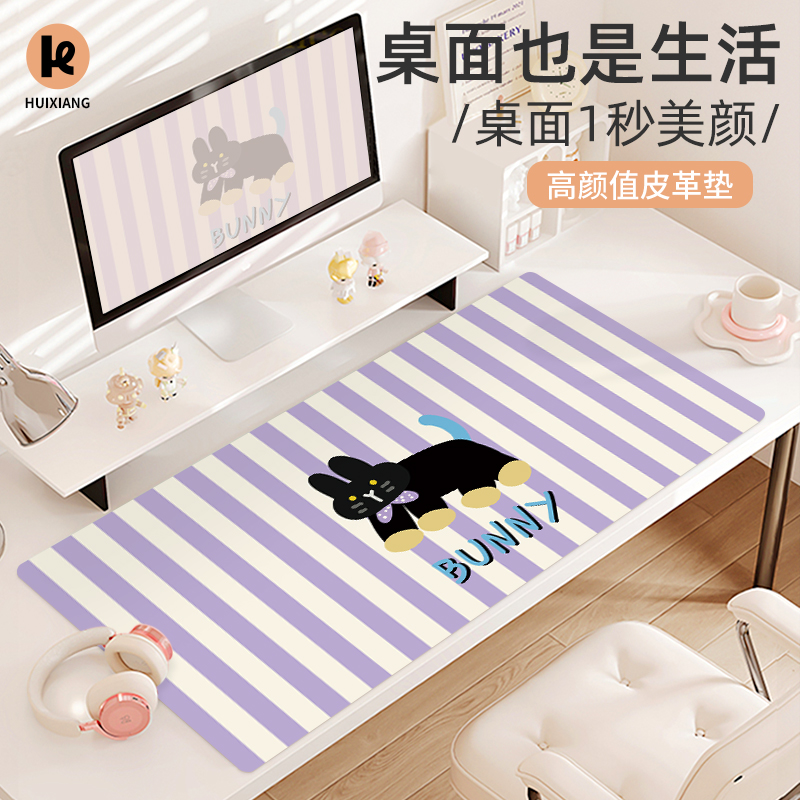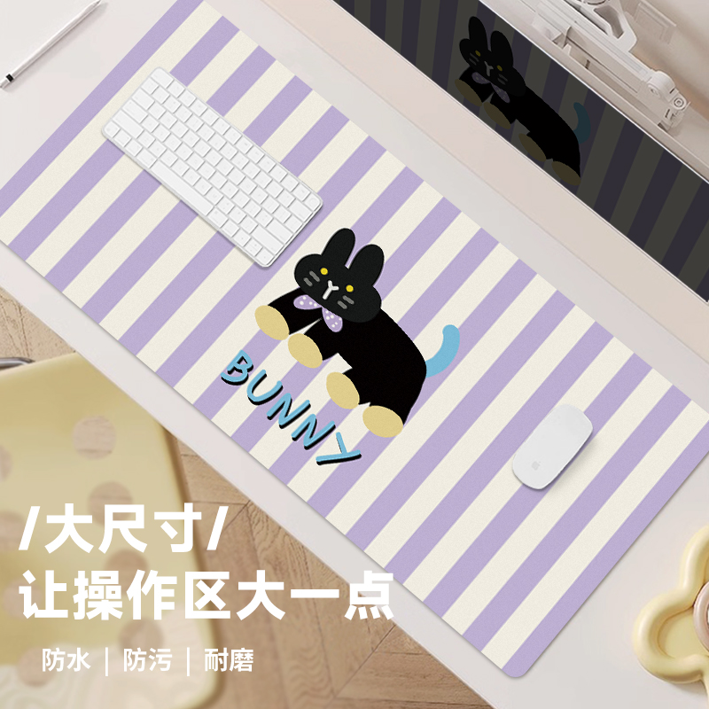 可爱领结黑兔皮革防水鼠标垫超大电脑桌垫办公室创意键盘垫女生