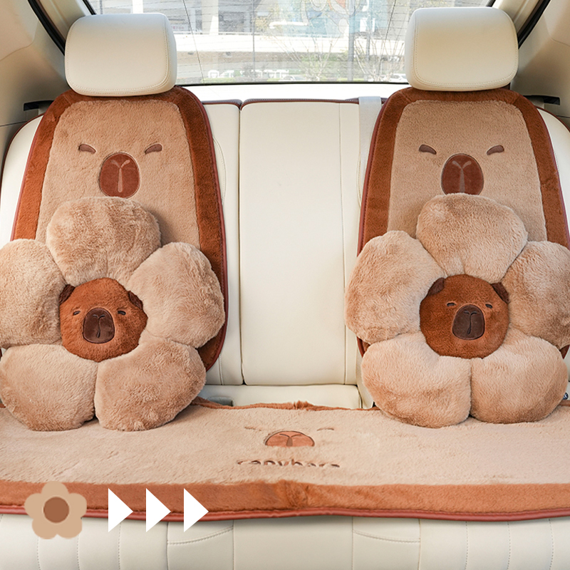 卡皮巴拉冬季 毛绒保暖汽车坐垫座椅靠背头枕腰枕卡通可爱女内饰品
