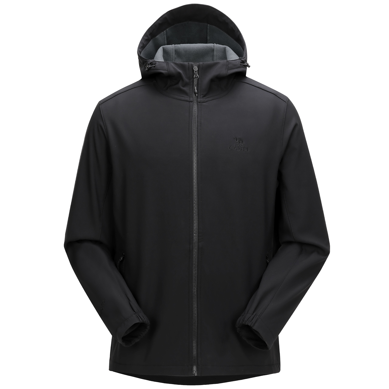 骆驼户外软壳衣男加绒加厚连帽上衣秋季 防泼水防风跑步夹克外套女