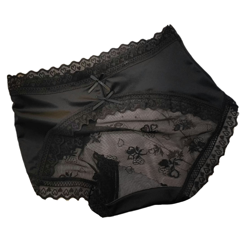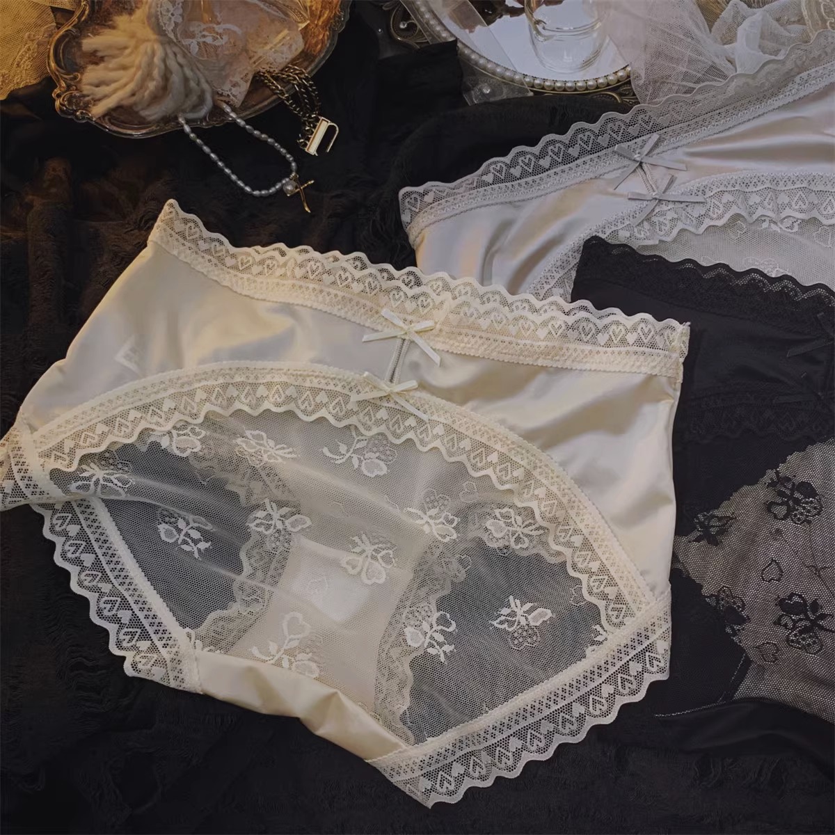女性感纯欲无痕中腰收腹提臀透气私房女生三角裤 法式 缎面蕾丝内裤